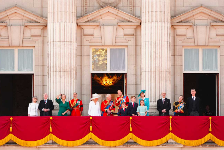 Les membres actifs de la famille royale britannique font une apparition au balcon du palais de Buckingham pour l’anniversaire du Roi Charles III