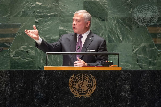 Le roi Abdallah II lors de la séance plénière de la 78e Assemblée générale des Nations Unies