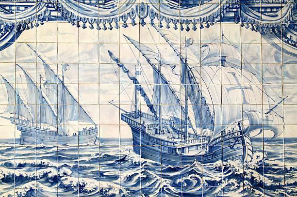 Les caravelles portugaises représentées en « Azuleijas », art céramique portugais issu notamment de Porto.